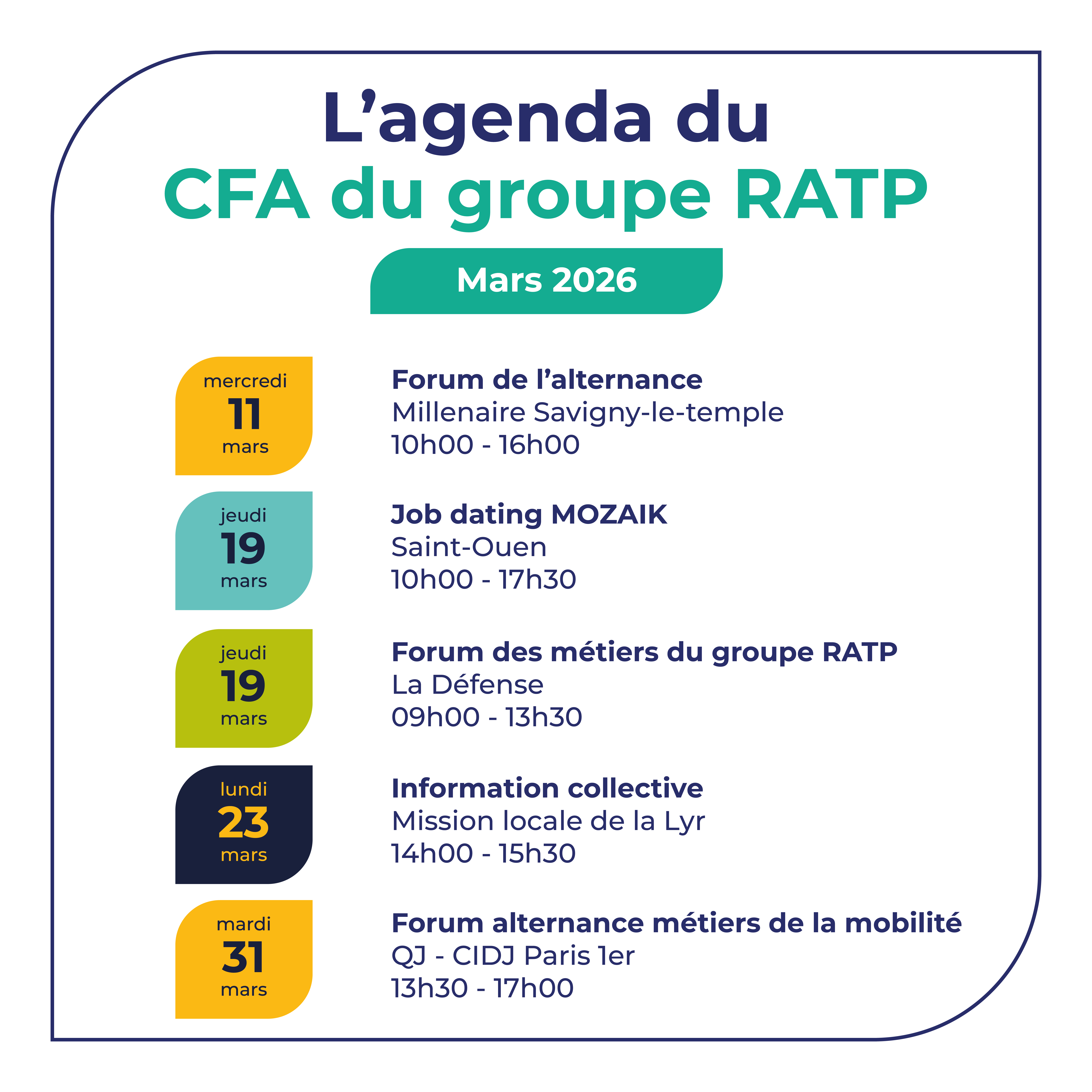 Créé en 2017, le CFA du groupe RATP a l’ambition d’accompagner l’évolution des besoins et des métiers dans le secteur du transport urbain et interurbain. Découvrez nos formations en contrat d'apprentissage et / ou en contrat de professionnalisation.